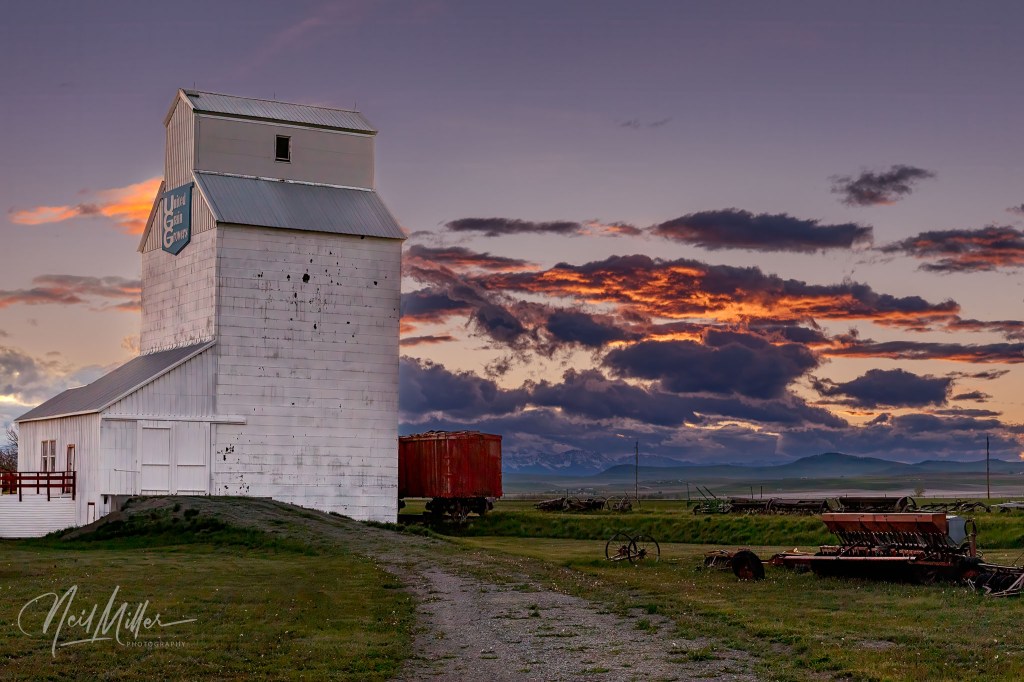 Northeast of Pincher Creek, atop a hill, is St. Henry’s Historic Catholic Church. I photographed the church near sundown. The church dates back to 1908 and appears to have been well-maintained although no longer is in active use.