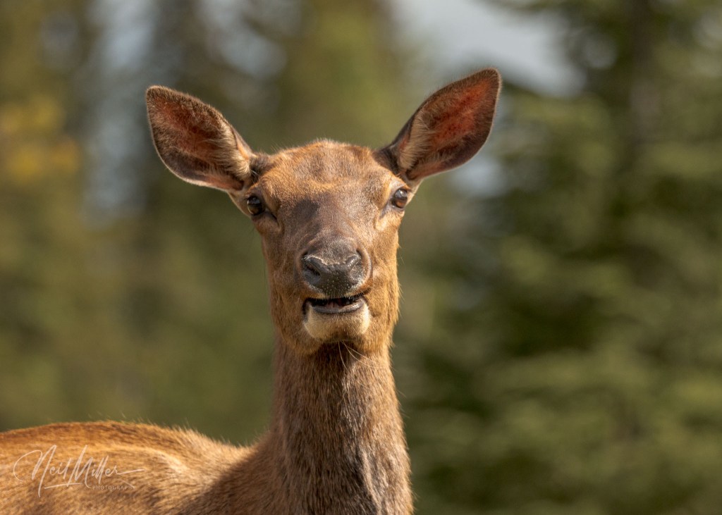 A fairly regular visitor near my campsite over the several days I was there was a cow elk (Wapiti). I did manage to capture a few images of her. I really liked the glowing fringe caused by backlighting in the first image and the interesting “facial” expression in the 4th image below.