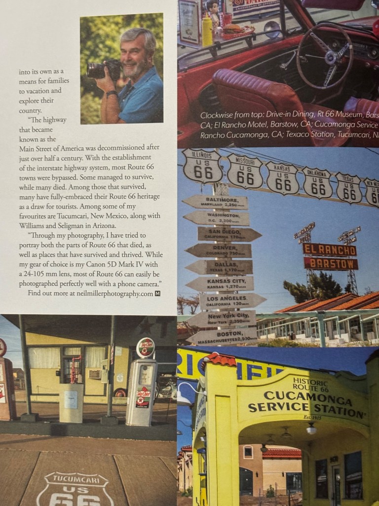 I opened the mailbox and there it was. My copy of Issue 130 of the MOG Magazine that features a spread of my Route 66 photos. It’s pretty exciting to see one’s photos in print. Even more exciting when it was the editor of the magazine who found my photos online and and approached me about using them for an article on Route 66.