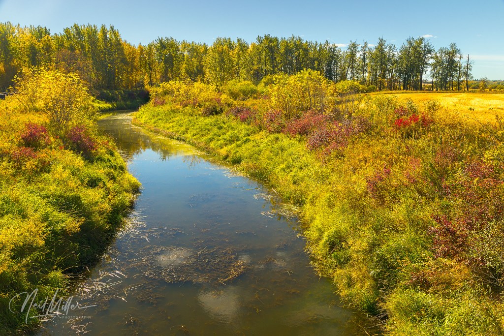 On one of our many beautiful Fall days, I decided to take a little drive in the countryside to capture some Fall colors. On the Alberta prairies, we tend not to get the wide range of colors that they get in Eastern Canada. Our Fall palate tends towards shades of yellow with the occasional bit of red.