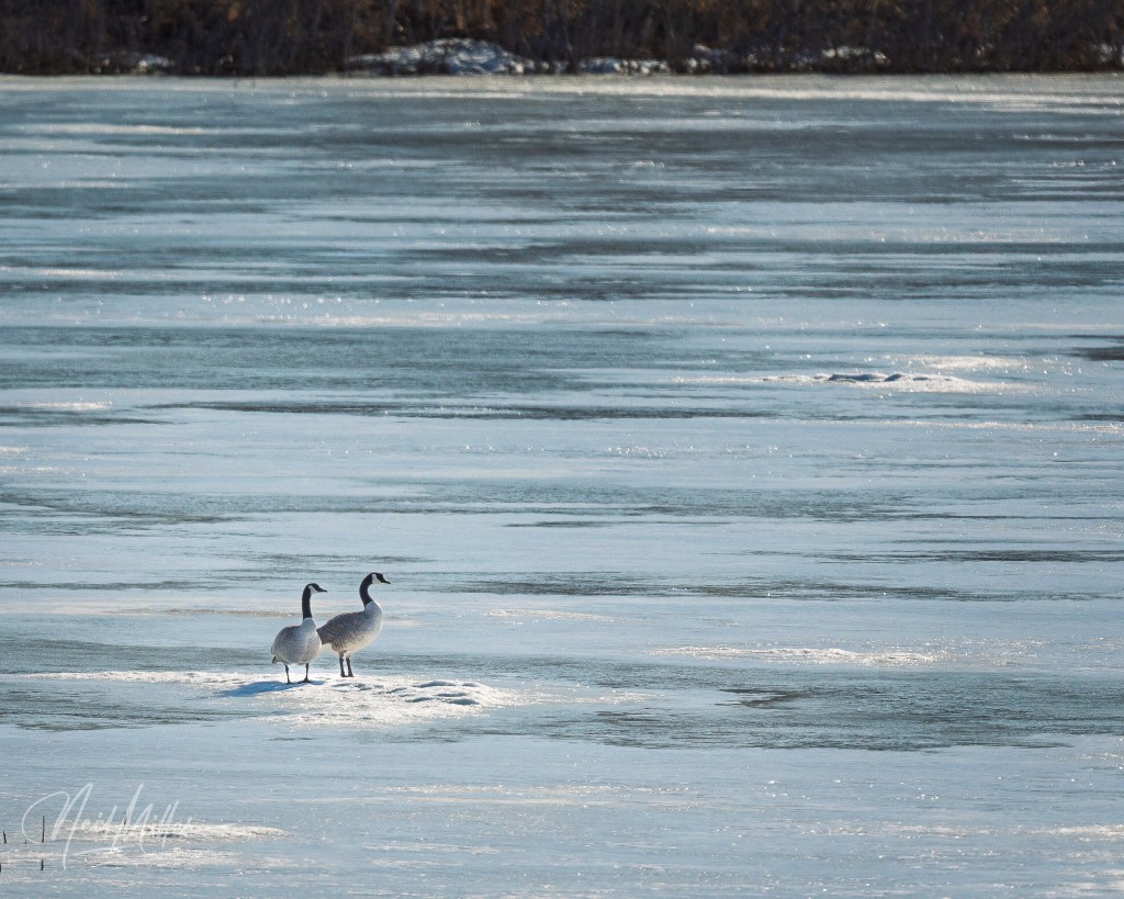 I saw these two Canada Geese on the ice and it made me think of the expression “getting cold feet”!