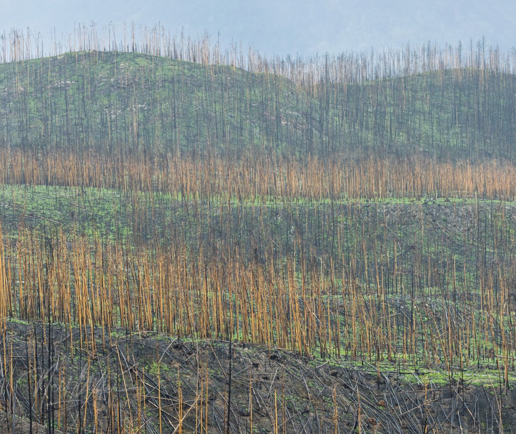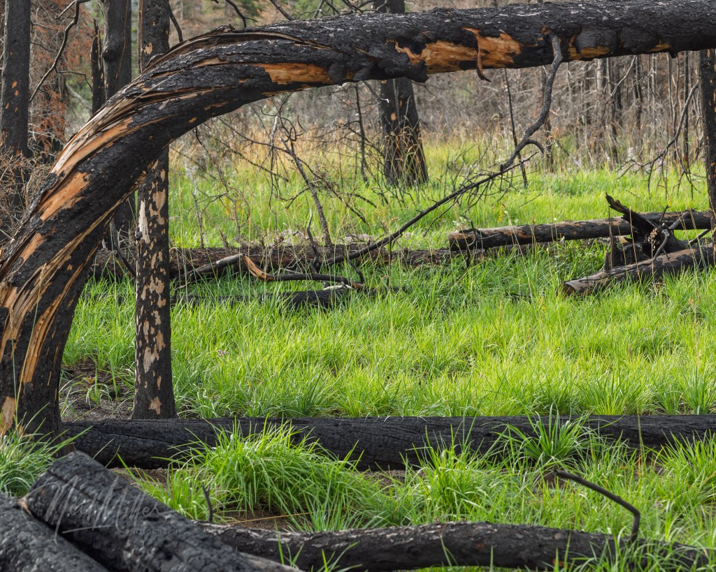 And even in the burned areas, there is beauty if you open your mind to it. Wildfires are part of nature. They are not an end: they are a new beginning. With the forest canopy gone, new growth starts to appear on the forest floor. Plants that could not previously grow in the shade of dense trees now have a chance to grow and prosper. The contrast between the bright green of new growth and the blackened remains of the old forest has a beauty all of its own.