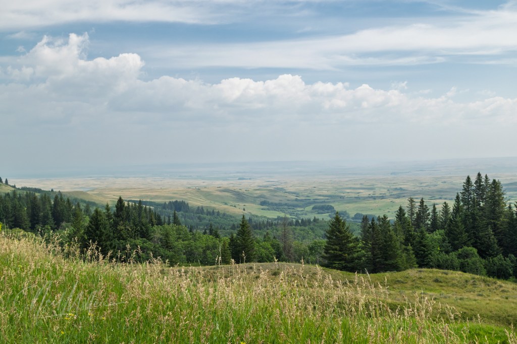 The Cypress Hills are a somewhat unique geographic feature in Southeastern Alberta and Southwestern Saskatchewan. They are essentially composed of layers of sedimentary rock built up from sand and gravel deposits from ancient rivers flowing from the Rocky Mountains. They are the highest points of land between the Rockies and Labrador. Today they are home to the Cypress Hills Interprovincial Park extending from Saskatchewan into Alberta.