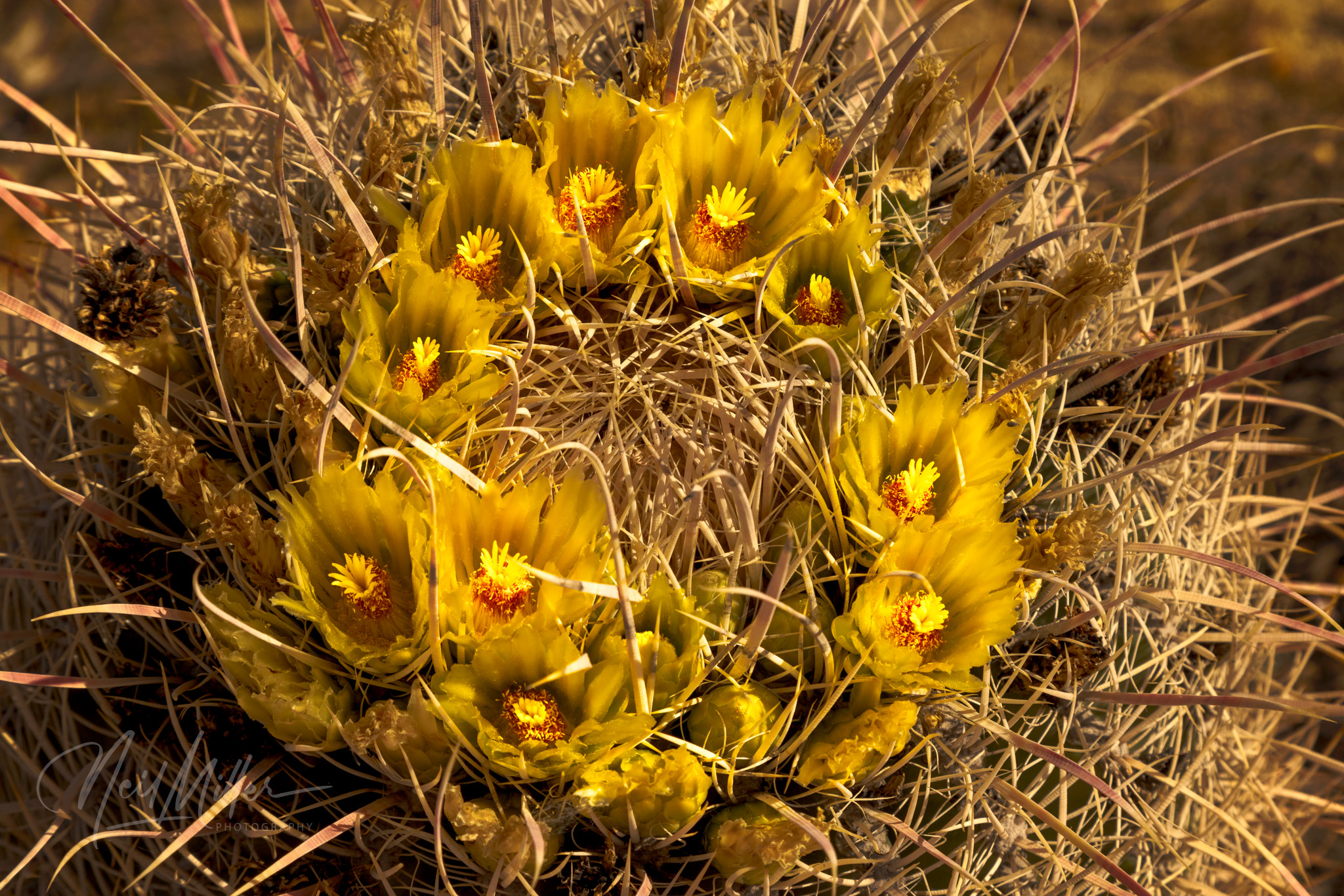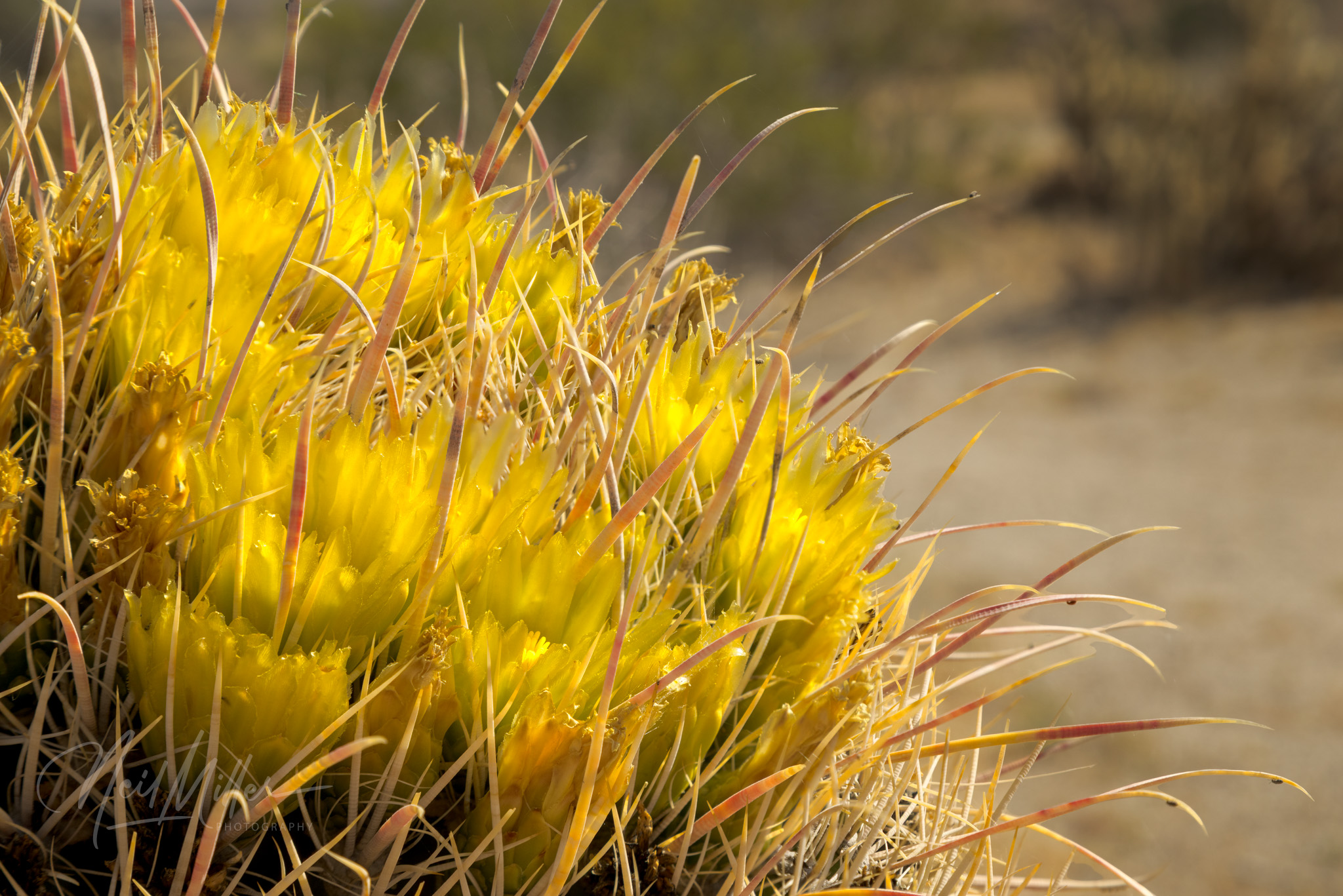 On my final visit, there were some California Barrel Cactus sporting crowns of yellow flowers.